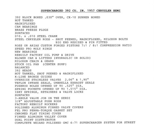Supercharged 392 CU. IN. 1957 Chrysler Hemi